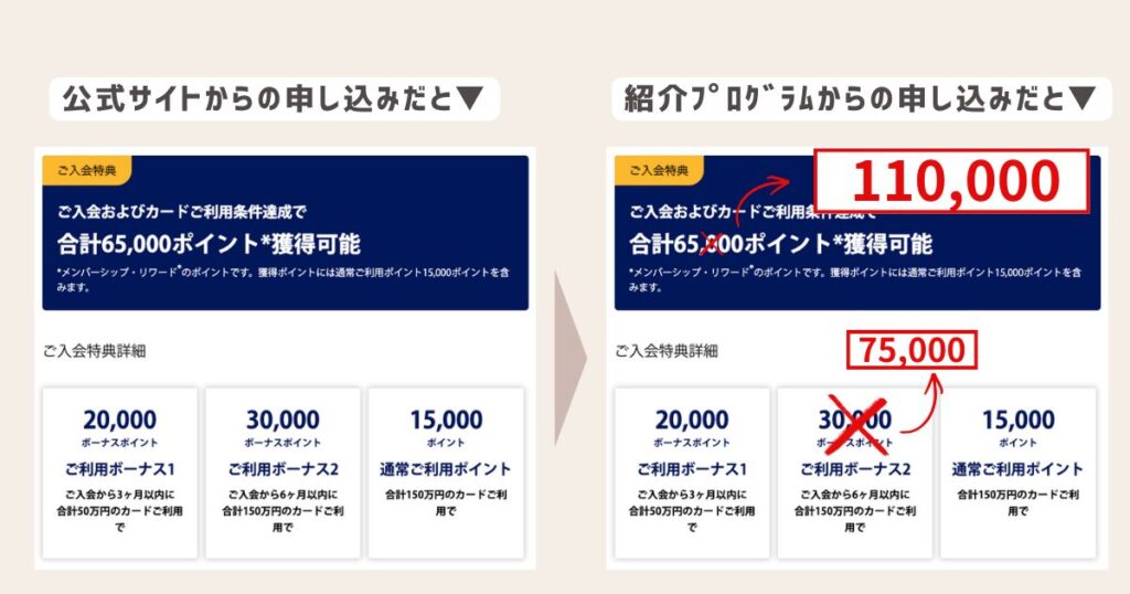 ポイントがもらえる達成条件などはどちらも同じなのですが、もらえるポイントがどこを経由するかで大きく変わるんです・・😳