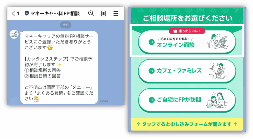 公式LINEに登録したらマネーキャリアからメッセージが届くから、相談の予約をしていくよ!