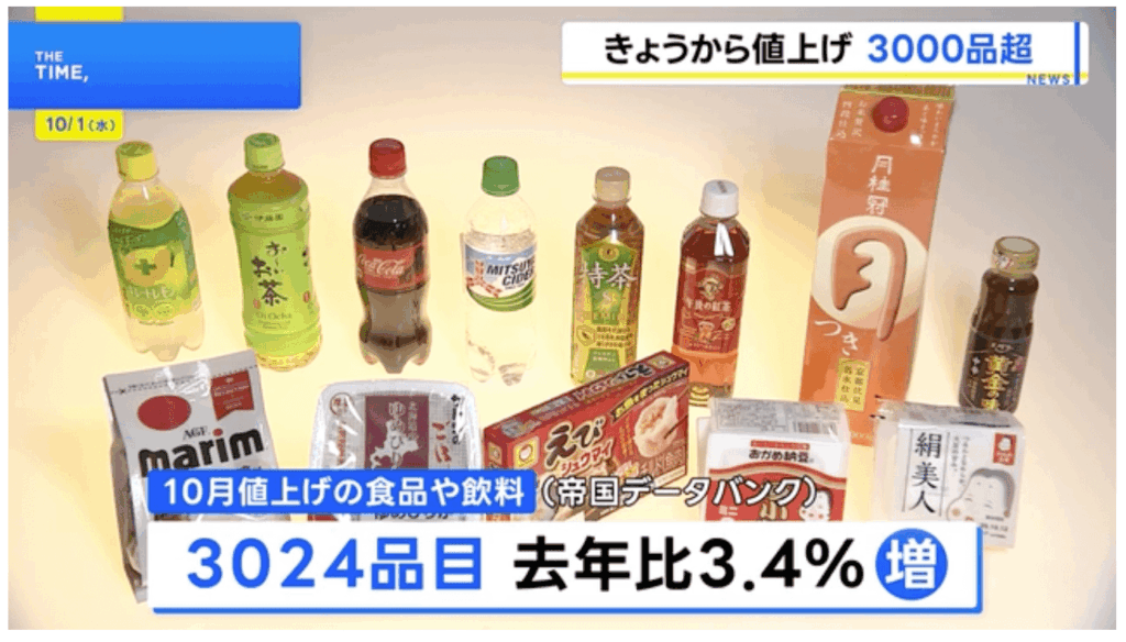 実際に2025年10月には、3,000品目以上の食品や飲料が値上げされたよ⋯😭