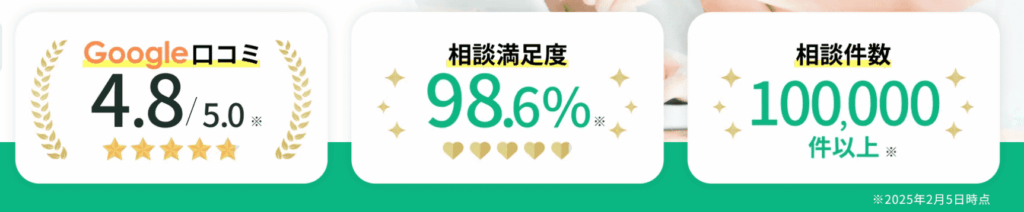 2025年2月時点、マネーキャリアの相談件数は累計10万件を超えていて、相談満足度は98.6%!