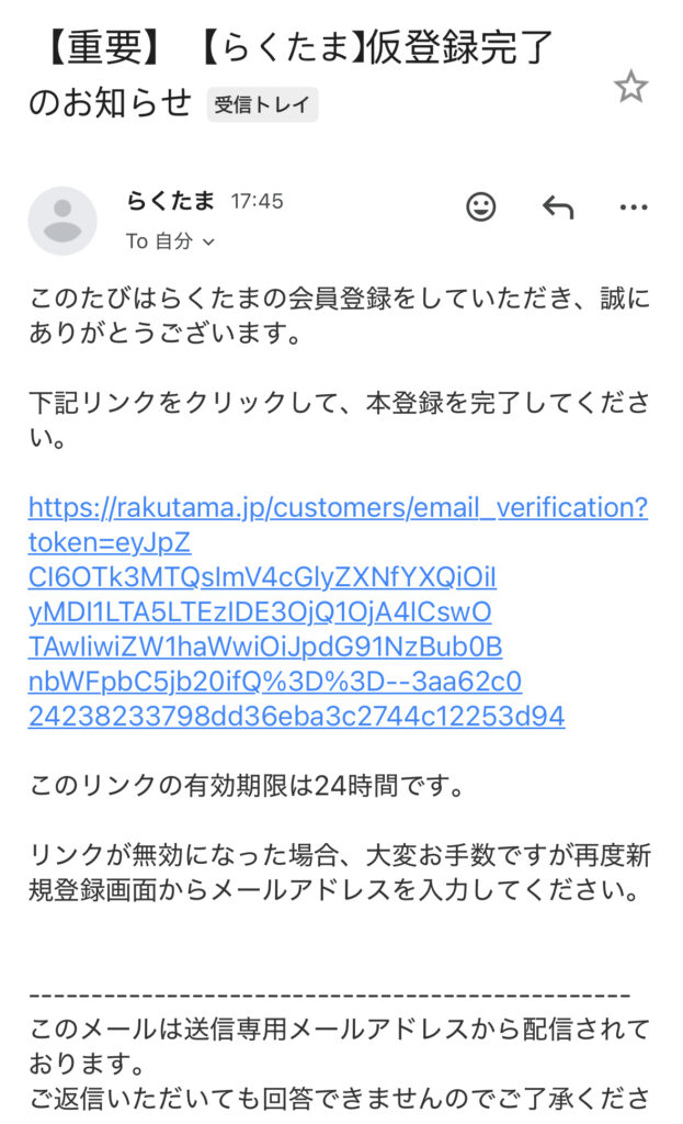 登録したアドレスにメールが届くのでそのURLをクリックしたら本登録に進むよ!