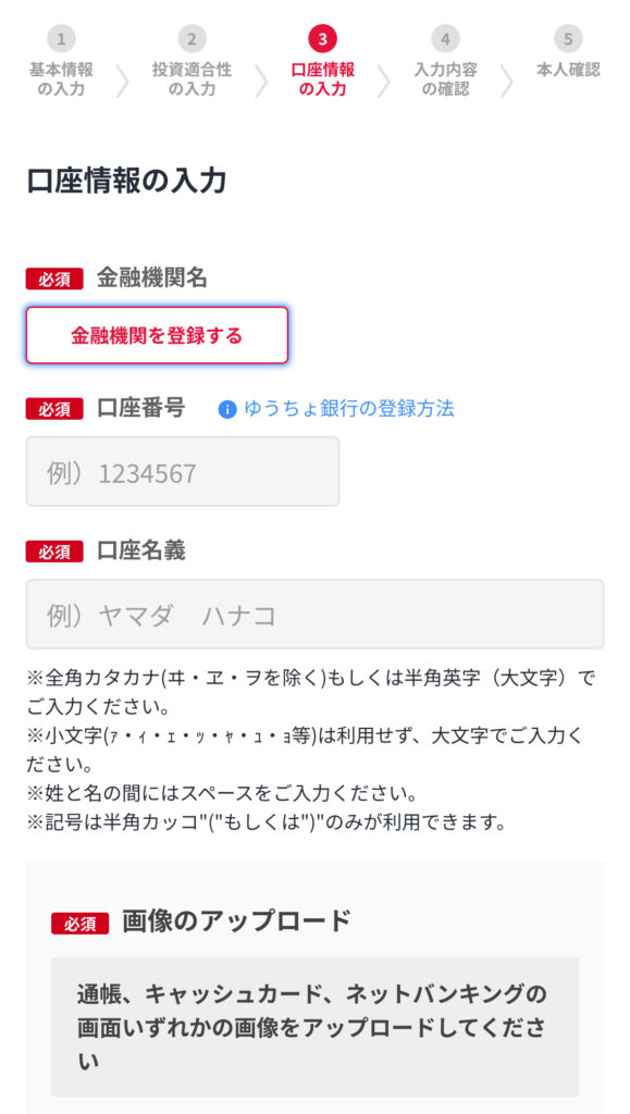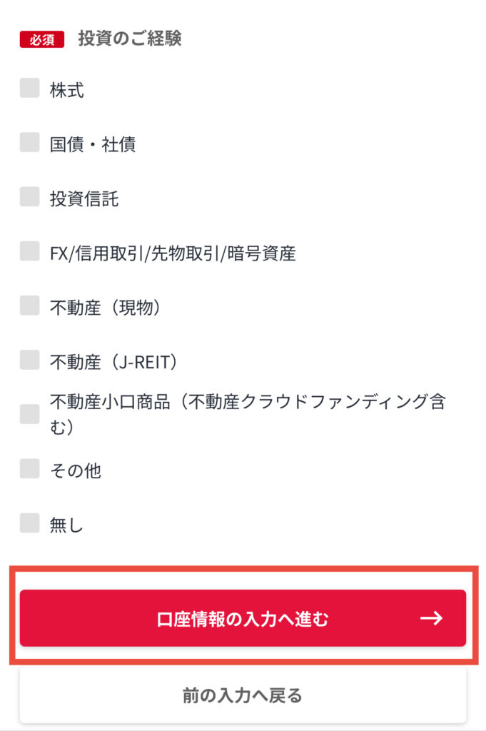 全て選択したら「口座情報」の入力に進もう。