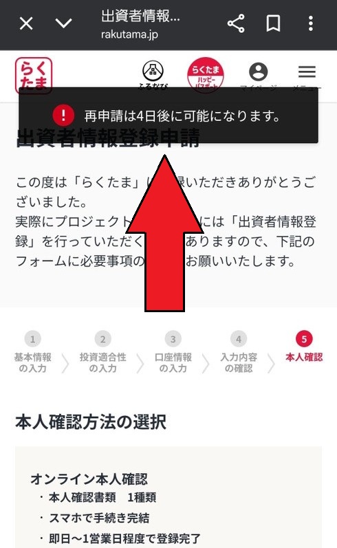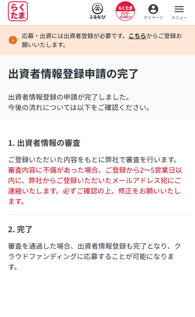 マイナンバーや免許証などで本人確認をしたら、出資者情報登録申請の完了!