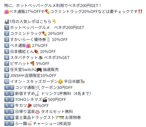大手福利厚生サービスなので、特典の内容が豪華✨